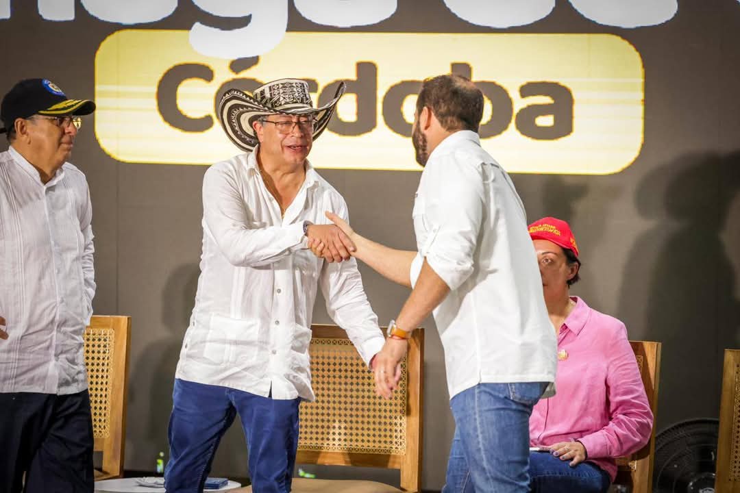 Por otro lado, el mandatario aprovechó para decirle al Presidente que Córdoba espera de su Gobierno, «estamos listos para hacer una bolsa conjunta que nos permita transformar nuestro departamento, necesitamos inversión urgente en el paso urbano de Lorica, pedimos también no prorrogar concesiones, impulso en la internacionalización del aeropuerto, apoyo a nuestros economía campesina, solución integral para la erosión costera, recuperación de la ciénaga de Ayapel y fortalecer la infraestructura para la fuerza pública».