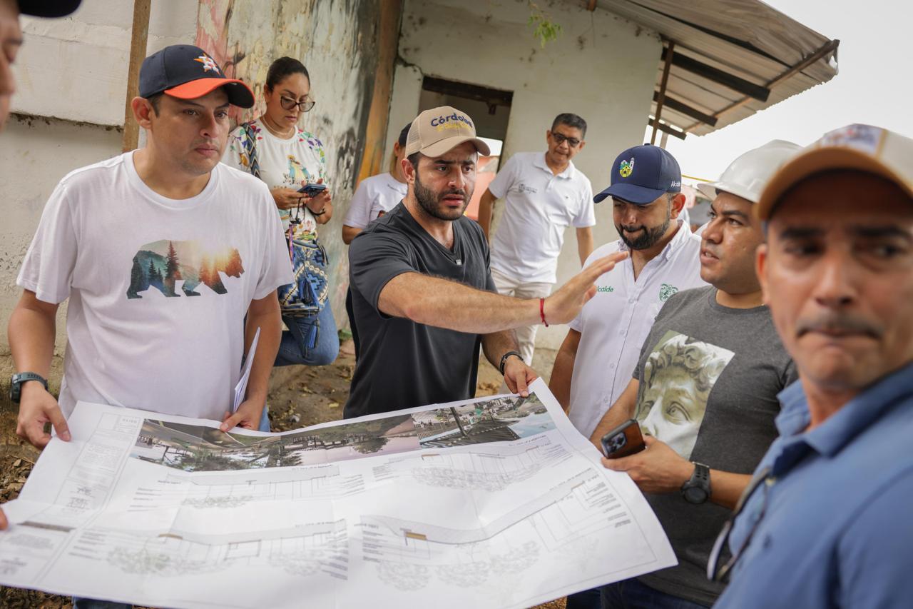 El recorrido inició en Cereté, donde el mandatario de los cordobeses inspeccionó los avances en la reconstrucción del Ecoparque Venus, en el barrio del mismo nombre a orillas del caño Bugre.