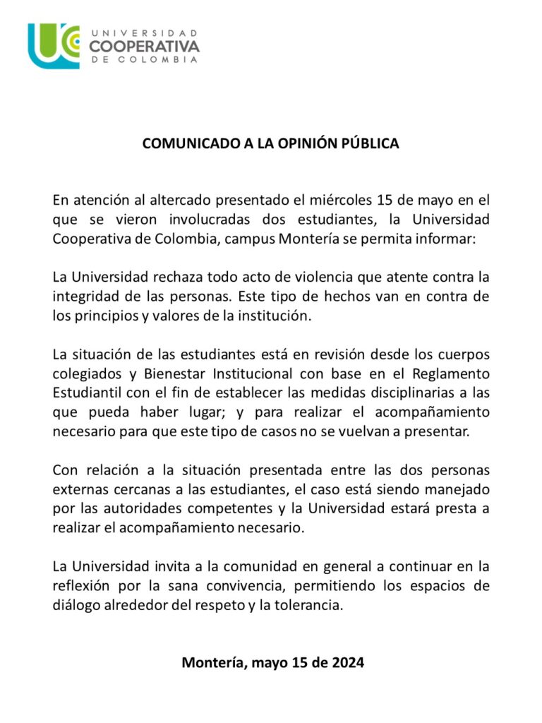 UCC en Montería se pronuncia ante bochornosa pelea de mujeres.