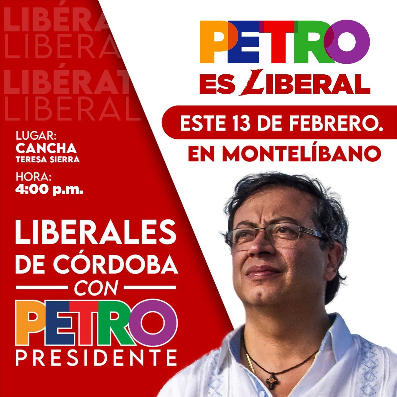 Petro estará en el municipio de Montelíbano, el próximo domingo 13 de febrero, a partir de las 4 de la tarde en la Cancha Teresa Sierra, donde se espera tenga un respaldo multitudinario de la gente del sur del departamento.