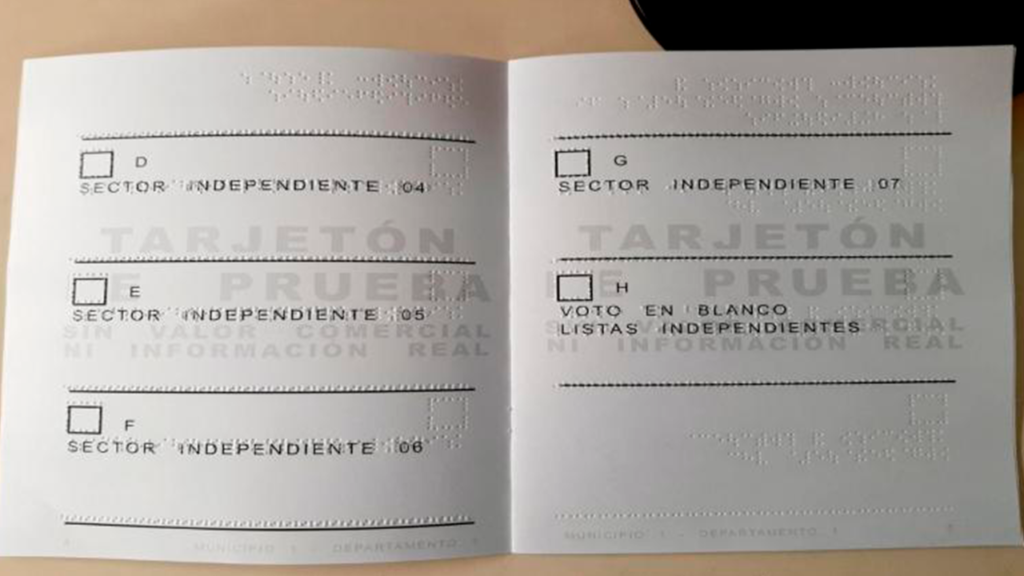 Para que los colombianos que están en condición de discapacidad puedan ejercer su derecho democrático sin ningún tipo de dificultad, se puso a disposición tarjetas electorales en Braille en las mesas de votación donde se identificó población con discapacidad visual.