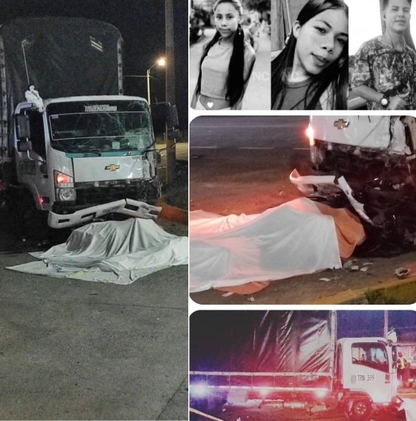 Las tres personas que perdieron la vida la noche de este domingo durante un accidente entre una moto y un camión, fueron identificadas como María del Mar Jaraba, de 15 años de edad, Karol González, 16 años de edad y Daniel, 17 años de edad.