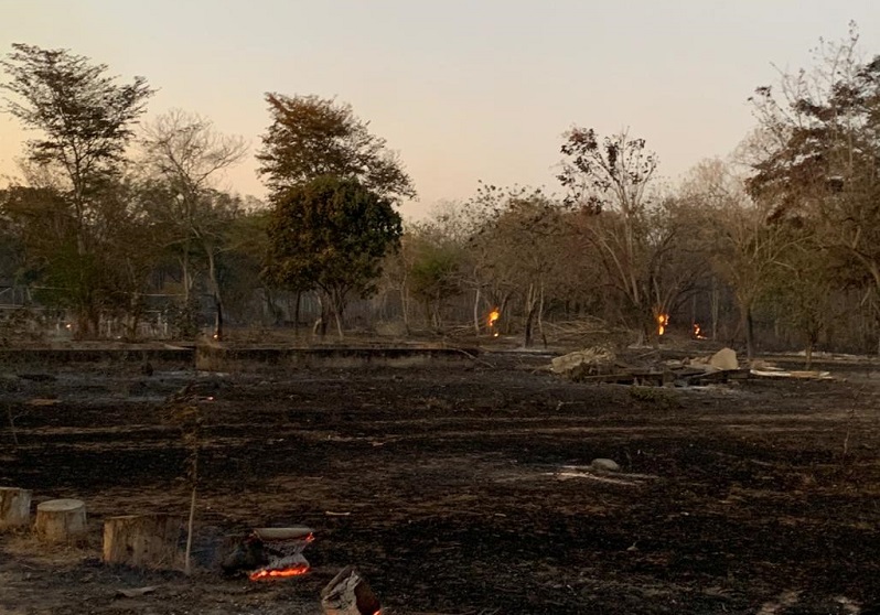 El hecho se registró en horas de la noche de ayer lunes y arrasó siete hectáreas de la hacienda San Mateo, ubicada en el kilómetro 4, frente a la hacienda La Campana.