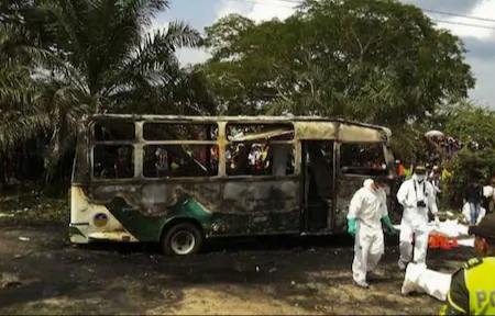 La conflagración ocurrió el 18 de mayo del año 2014 en el municipio de Fundación, departamento del Magdalena, cuando el vehículo de placas UV8-556, que transportaba a más de 60 menores de edad tras una actividad religiosa, se incendió debido al mal estado técnico y la imprudencia del conductor del automotor.