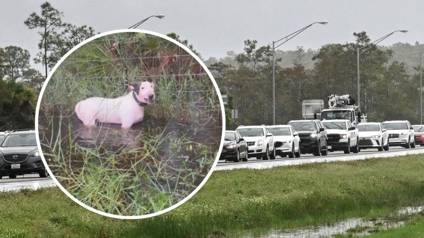 Asustado, atado a una valla y con el agua de la lluvia hasta rozándole la tripa. Así han encontrado este miércoles agentes de la Patrulla de Carreteras de Florida (FHP) a un perro que había sido abandonado junto a la autopista en Tampa, Florida, concretamente en la carretera I-75, con el huracán Milton a escasas horas de tocar tierra en el estado estadounidense.