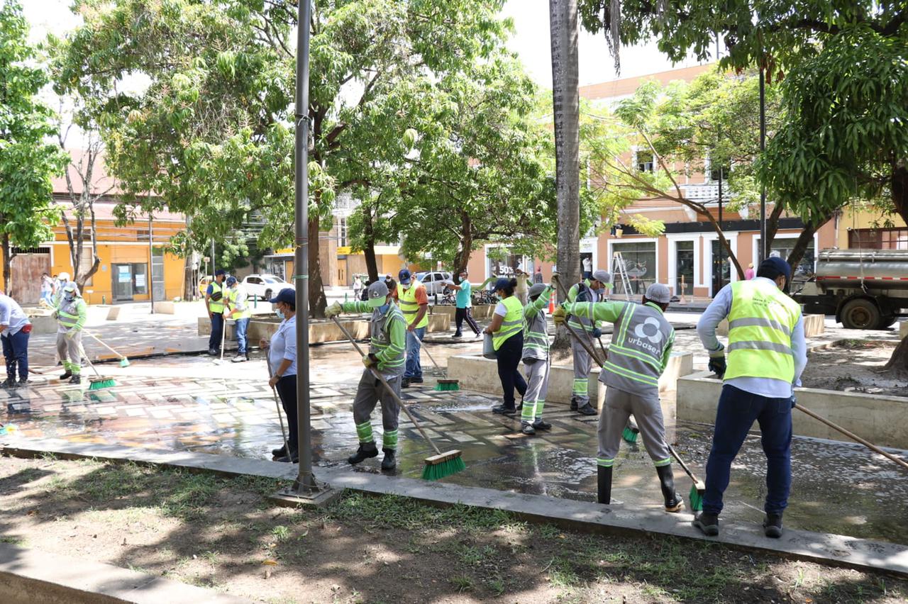 Montería, 12 de agosto de 2021. La Alcaldía de Montería a través de sus equipos de Zonas Verdes, Espacio Público, Mantenimiento Integral de Parques, Comité Cívico, Bomberos y Urbaser iniciaron intervención en los parques Simón Bolívar, Miguel R. Méndez y Laureano Gómez.