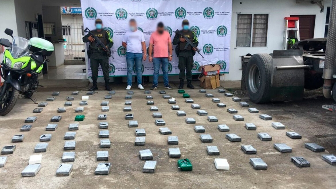 En la cabina de un tractocamión, unidades adscritas a la Seccional de Tránsito y Transporte del Departamento de Policía Córdoba, descubrieron 110 kilos de cocaína. Según la indagación, la droga procedía desde Ciénaga Magdalena con destino Necoclí (Antioquia) y utilizando las costas del Urabá, despacharlas a Centroamérica.