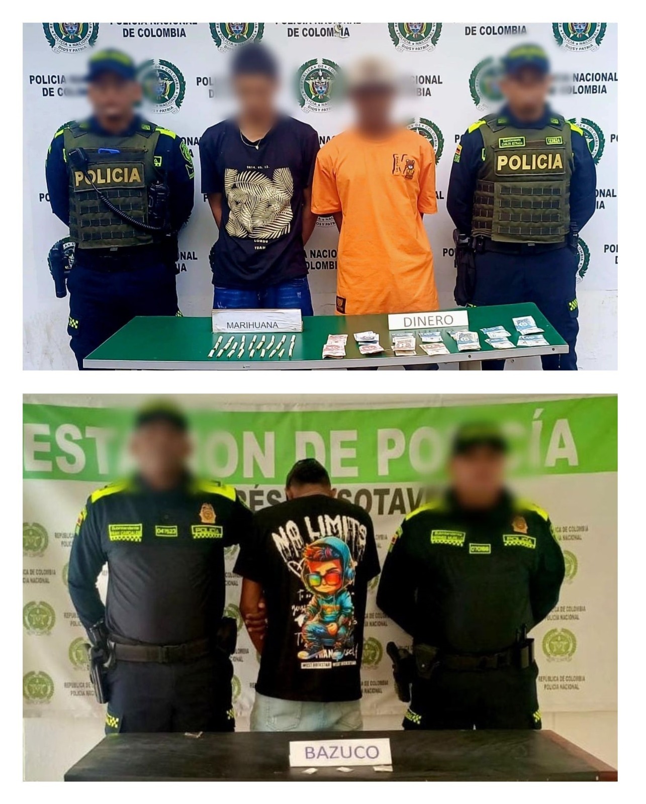 La primera acción policial se materializó en el barrio El Porvenir, zona urbana del municipio de Montelíbano; ahí los uniformados lograron sorprender a dos hombres, portando 26 cigarrillos de marihuana que pesaban 52 gramos y dinero en efectivo, al parecer producto de su comercialización y venta.
