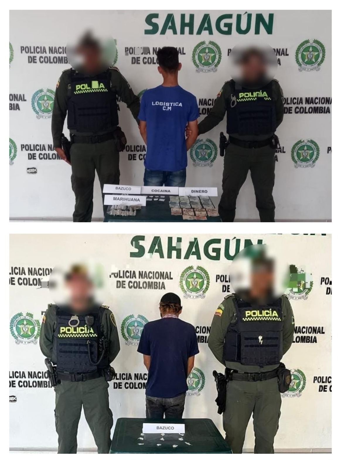 La actividad policial se materializó, en momentos en que se desplazaban por los barrios Simón Bolívar y La Monta del municipio de Sahagún. En estos sitios, les fueron descubiertas las sustancias alucinógenas.