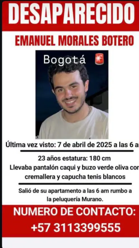 La desaparación de Emanuel Morales Botero, un joven de 23 años, conmocionó a su familia y a la comunidad académica el lunes 7 de abril de 2025.