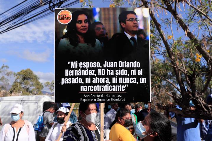 Decenas de seguidores del exgobernante, del conservador Partido Nacional, bajo cuya bandera Hernández fue presidente durante ocho años, le expresaron su apoyo en las afueras del poder judicial coreando consignas y con pancartas señalando que es inocente.
