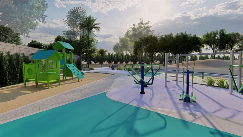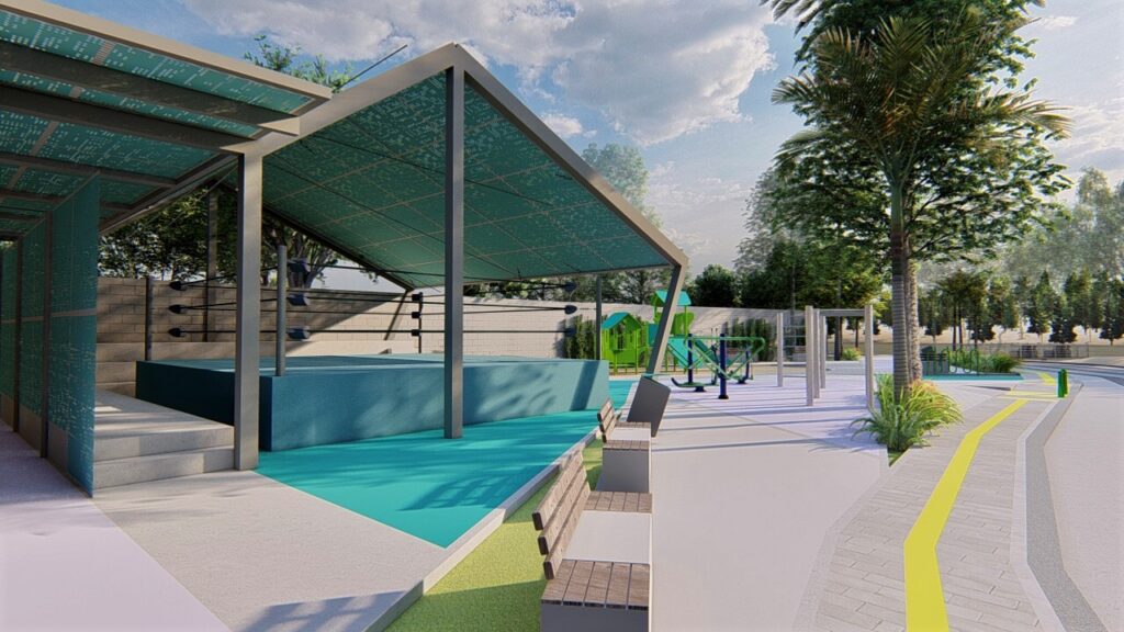 El área del proyecto es de 623 m2 y contemplaría zona para gimnasio biosaludable y zona calistenia, zonas de estancia, mirador hacia el río Sinú, Plazoleta de Acceso, Juegos infantiles, gradería, ring de boxeo, almacenamiento y camerinos, andén perimetral con una rampa de acceso. El área donde se desarrollará es en el predio del antiguo colegio del corregimiento, diagonal a la sede de la Ese Vida Sinú.