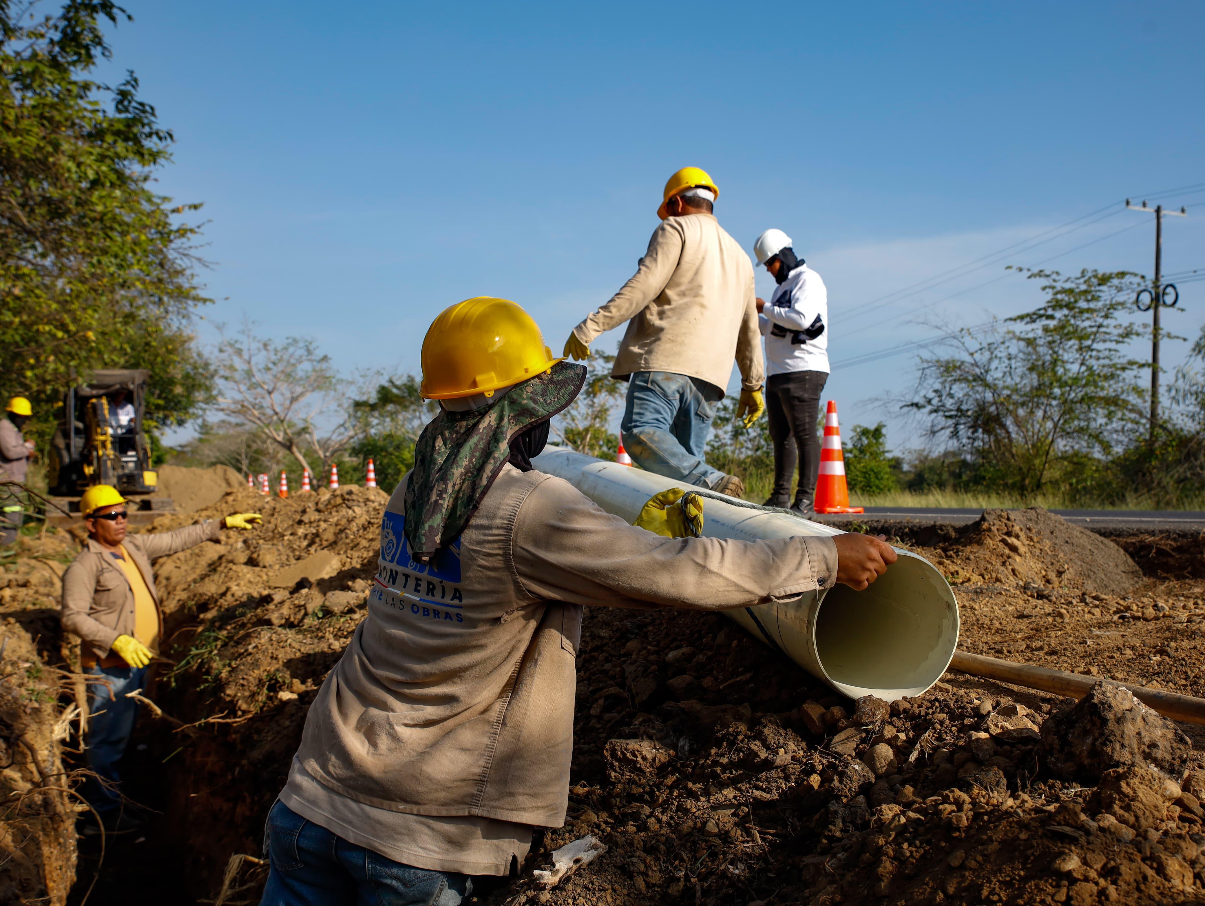 Actualmente, las labores incluyen la instalación de tuberías de PVC de 10 pulgadas a lo largo de 84 metros lineales, demostrando un significativo avance en el proyecto.