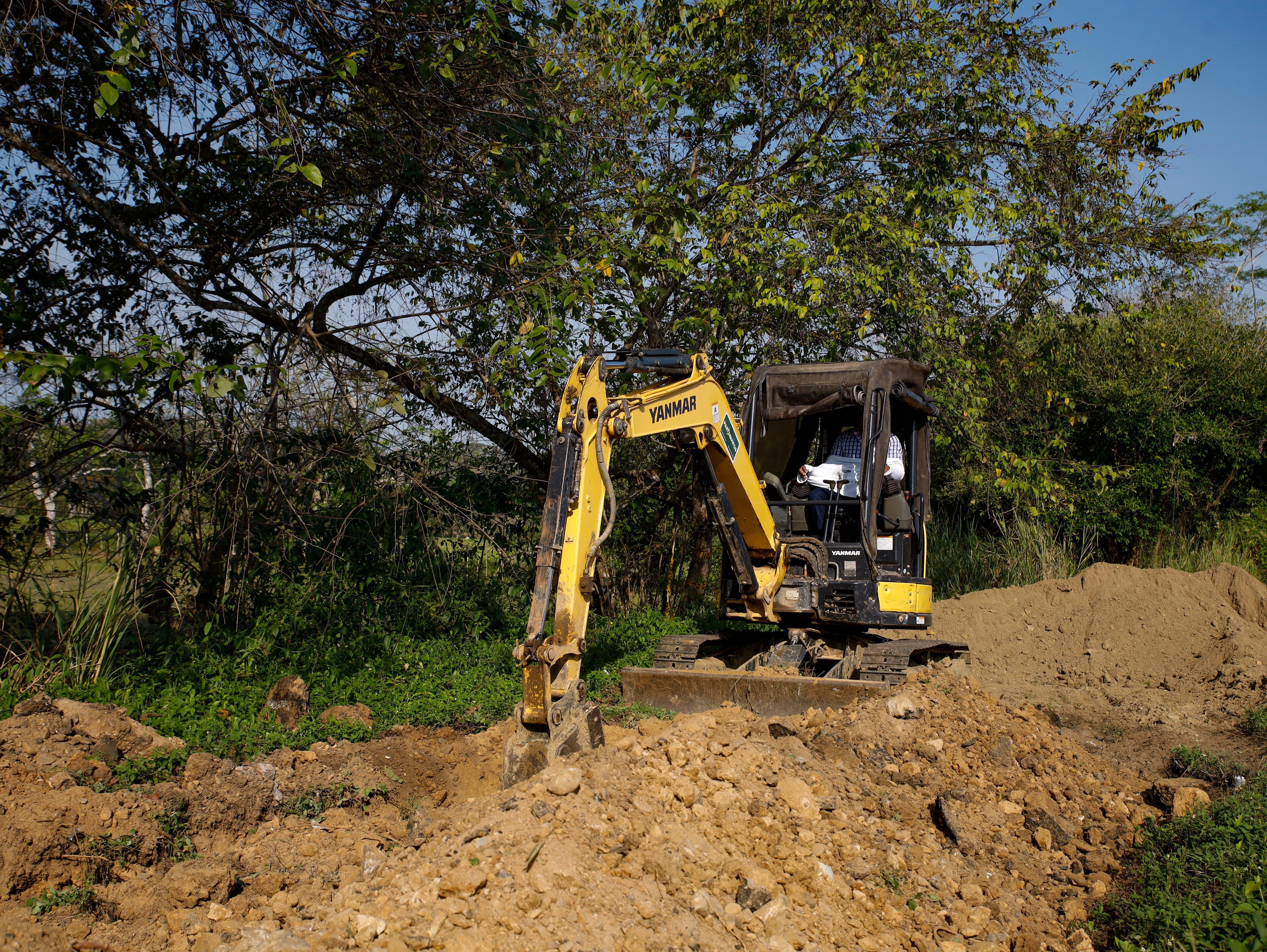 Las labores se llevan a cabo en un punto estratégico ubicado a 800 metros de la cabecera del corregimiento, ubicación seleccionada por ofrecer un espacio adecuado tanto para el despliegue de maquinaria como para el manejo eficiente del trabajo, garantizando un frente de construcción continuo de hasta 700 metros lineales.