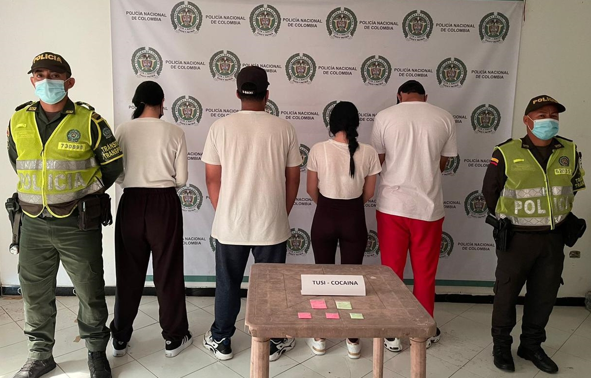 Las autoridades lograron la captura de cuatro personas dos de sexo masculino y dos femeninas entre los 18 y 20 años en la vía Planeta Rica – Montería km 33, movilizando en un vehículo tipo camioneta con cinco bolsas plásticas con estupefaciente.