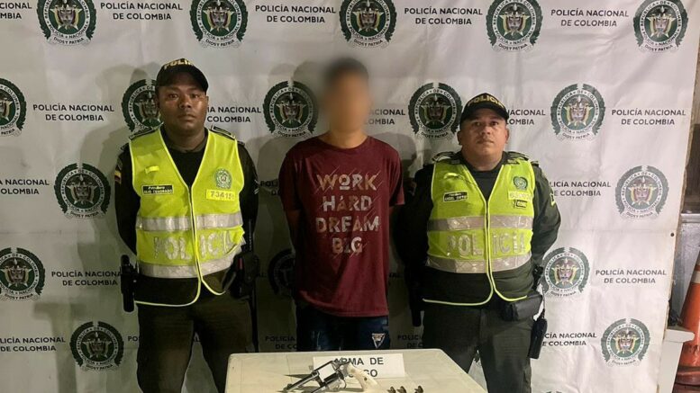 En el desarrollo de actividades operativas y de control en el marco de la ofensiva nacional contra el delito, uniformados del Modelo Nacional de Vigilancia Comunitaria por Cuadrantes, hacen efectiva la captura de un hombre de 24 años de edad, por el delito de fabricación, tráfico, porte o tenencia de armas de fuego, accesorios, partes o municiones.