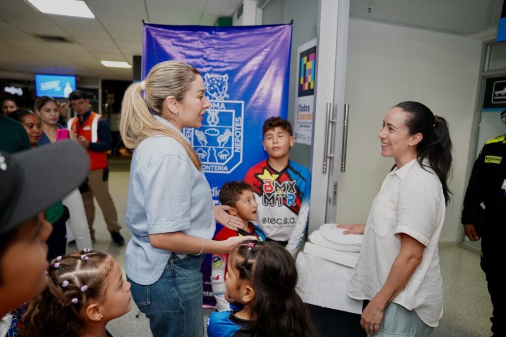 Montería, 16 de marzo de 2026. Montería continúa consolidándose como epicentro del deporte continental. En la antesala del inicio del Campeonato Panamericano de Ciclismo, la campeona olímpica Mariana Pajón fue recibida en la ciudad por la gestora social Diana Sierra Márquez y niños y niñas del Club BMX MTR, quienes le dieron una cálida bienvenida y compartieron con la deportista que ha marcado la historia del ciclismo mundial.