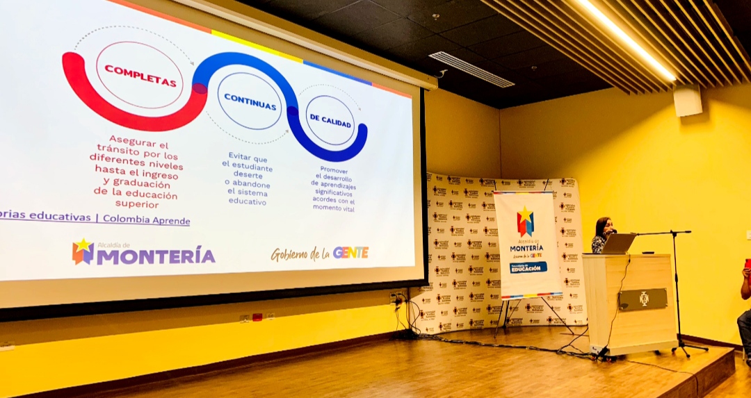 Montería, 3 de agosto de 2022. «Creemos en el poder transformador de la educación». Con esta frase, Lina Cordero Berrío, secretaria de Educación Municipal, socializó, ante rectores de instituciones educativas oficiales y privadas, la implementación del Observatorio de Trayectorias Educativas, herramienta de consulta de información estadística que permite hacer seguimiento al tránsito de los estudiantes por cada nivel educativo (desde la primera infancia hasta la inserción laboral) y generar políticas para disminuir los riesgos de deserción escolar.