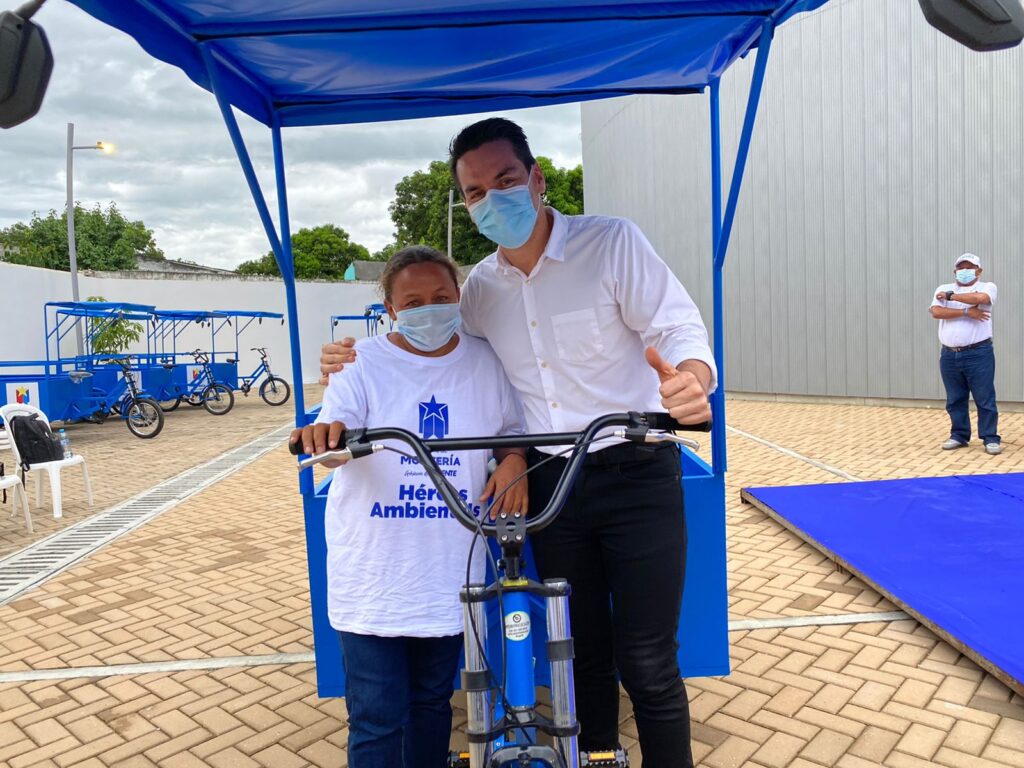 Por otro lado, y en sintonía con la Estrategia Nacional de Economía Circular, en donde el reciclaje juega un papel fundamental, la Alcaldía de Montería empezó el fortalecimiento de la labor de los recicladores por medio de dotación de triciclos, tapabocas y carnets, a integrantes de las seis asociaciones que están legalmente constituidas en la ciudad.