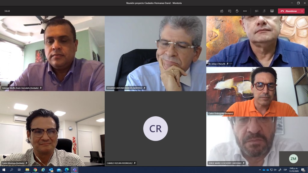 Montería, noviembre 27 de 2020.- Dando alcance a la agenda internacional propuesta por el Gobierno de la Gente, y que por primera vez tiene la ciudad, el alcalde Carlos Ordosgoitia Sanin, propició un encuentro virtual con el fin de avanzar en la solicitud de hermandad de Montería con la ciudad de David en Panamá.