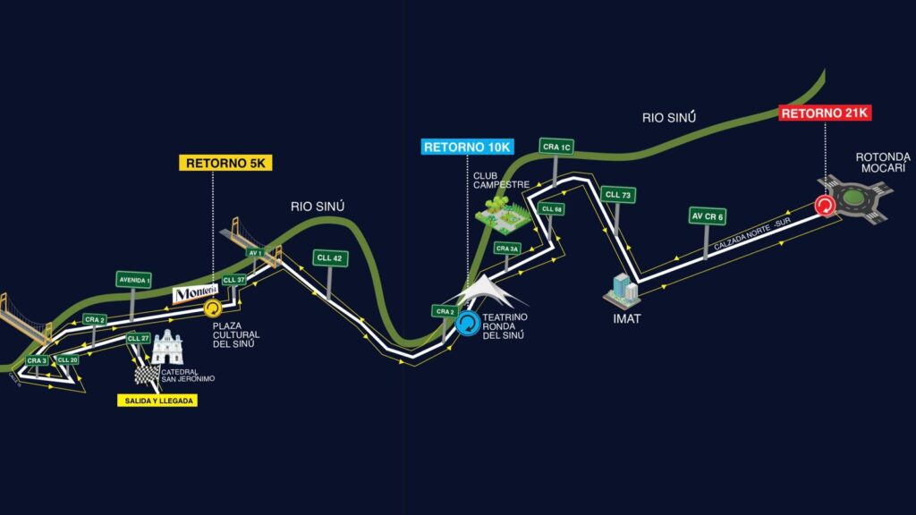 En esta nueva versión, el evento tendrá como primera gran novedad la ubicación del sitio de salida y meta en el parque Simón Bolívar, en pleno corazón de la Perla del Sinú. Desde ese punto saldrán las cuatro categorías en disputa: el reto en la distancia 3k (para infantes de 5 a 12 años de edad), que se estrena este año; al igual que las acostumbradas 5K, 10K y 21K.