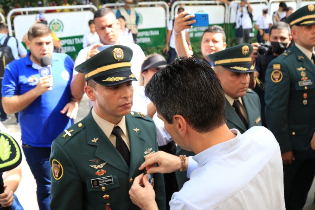 Posteriormente, los actos protocolarios prosiguieron en la Avenida Primera con calle 29, donde se instaló una tribuna para las autoridades. Allí se brindó reconocimiento a militares y policías, por su excelente desempeño en pro de la convivencia y la seguridad ciudadana.