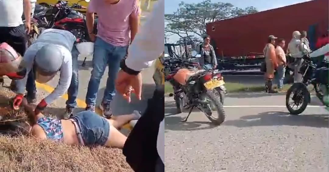 Un motociclista y su parrillera que intentaron evadir un puesto de control de tránsito terminaron accidentados en el doble anillo vial de Montería.