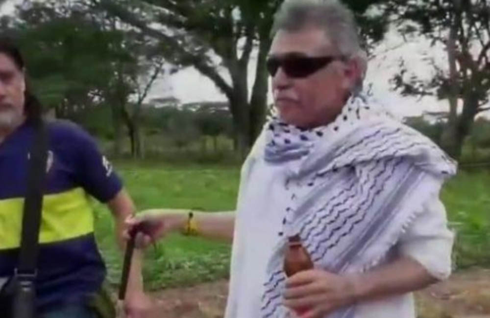 Vestido de camuflado, empuñando un arma de fuego de largo alcance y acompañado por dos hombres fuertemente armados, alias Jesús Santrich, miembro del grupo armado ilegal autodenominado La Nueva Marquetalia, concedió una entrevista en la que contó detalles del crimen de Álvaro Gómez Hurtado y los motivos que lo llevaron a retomar las armas.