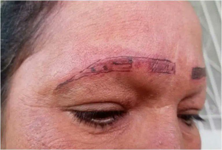 “Vean cómo dejaron a mi mamá”, escribió una joven en Facebook después de que unas personas quemaran la piel a su progenitora en un procedimiento para tatuarse las cejas.