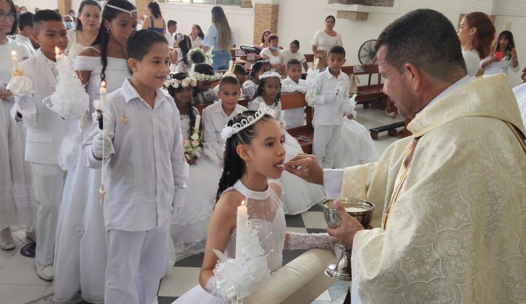 Montería, Córdoba. En las instalaciones de la Iglesia Nuestra Señora del Carmen, de la ciudad en mención, se llevó a cabo la Santa Misa presidida por el presbítero Alfonso Mercado Oyola, capellán de la Policía Nacional, y en la cual 20 niños, niñas y adolescentes hijos del personal de la institución, recibieron su primera comunión en el Día de la Virgen del Carmen.