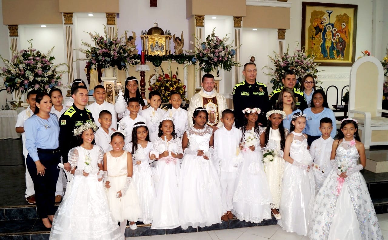 Montería, Córdoba. En las instalaciones de la Iglesia Nuestra Señora del Carmen, de la ciudad en mención, se llevó a cabo la Santa Misa presidida por el presbítero Alfonso Mercado Oyola, capellán de la Policía Nacional, y en la cual 20 niños, niñas y adolescentes hijos del personal de la institución, recibieron su primera comunión en el Día de la Virgen del Carmen.