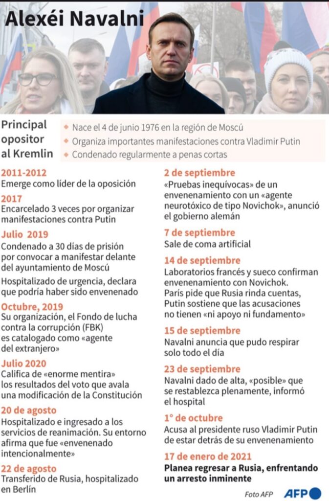 La principal figura de la oposición rusa cayó súbitamente en coma en agosto, cuando regresaba de un viaje a Siberia. Inicialmente fue hospitalizado en Omsk, una gran ciudad de la región, pero fue evacuado unos días después a un hospital de Berlín.