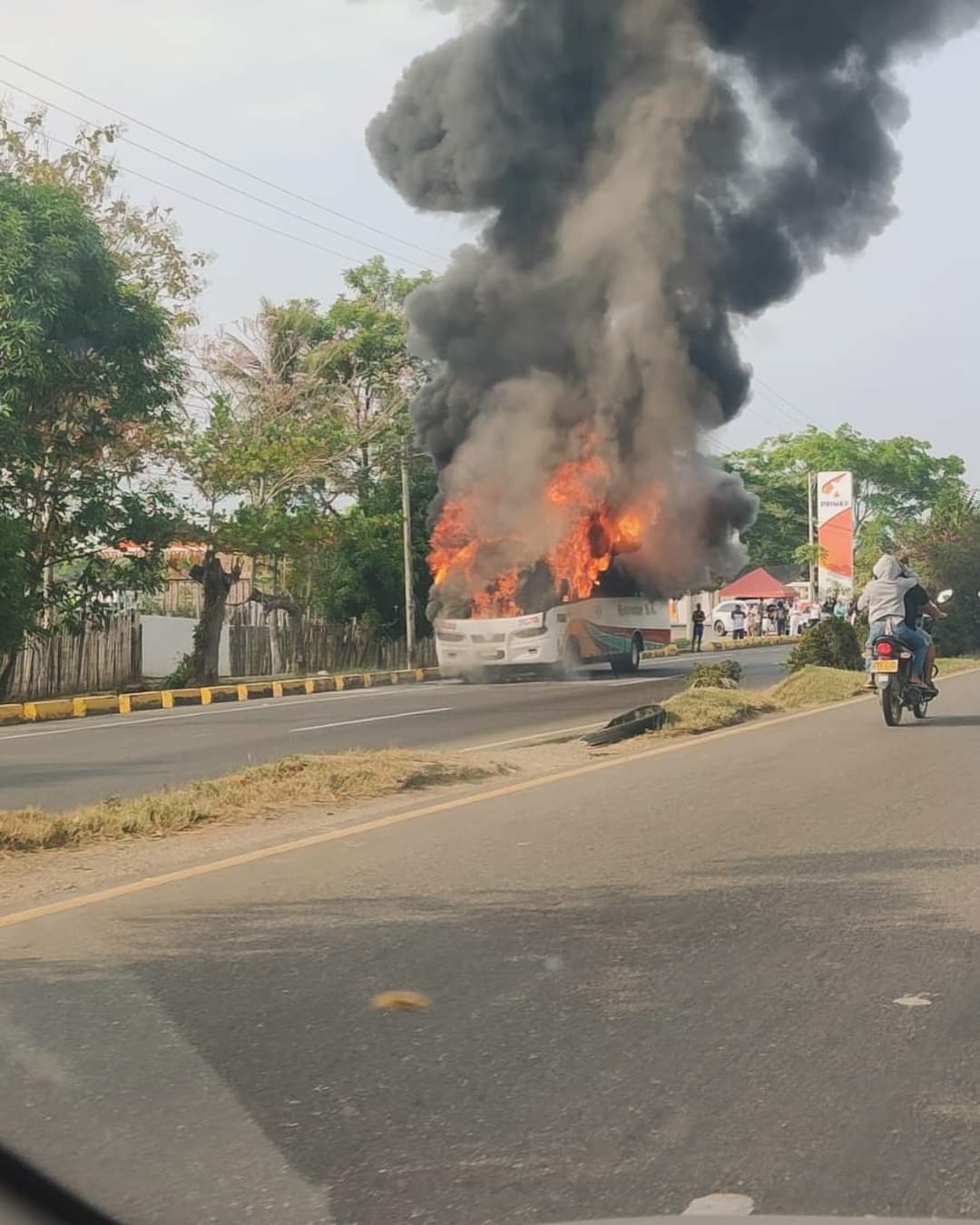 El automotor que cubre la ruta Montería Cereté afiliado a la empresa Sotracor comenzó a botar humo por lo que los pasajeros tuvieron que bajar de inmediato, luego se fue prendiendo hasta quedar completamente en llamas.