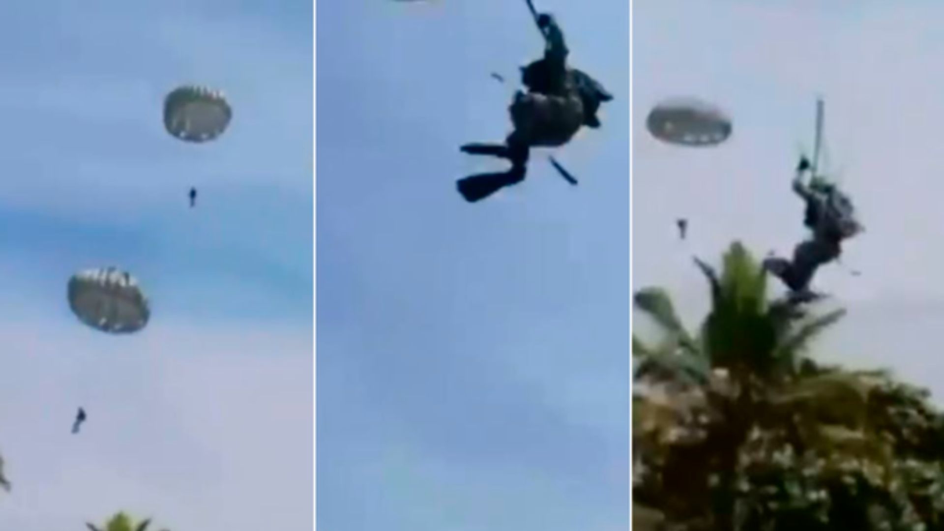En las últimas horas se hizo viral un vídeo en el que se observa el momento exacto en el que un grupo de paracaidistas de la Fuerza Aérea Colombiana sufrió una aparatosa caída, en el municipio de Coveñas, Sucre.