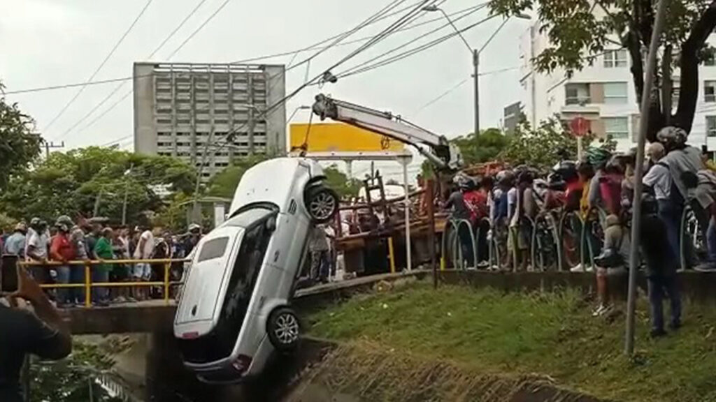 El susto y la pena ante la mirada de curiosos es lo único que aqueja a quien iba al volante del vehículo que, en aparente descuido, terminó saliéndose de la avenida circunvalar y terminó incrustado en el canal de la calle 39.