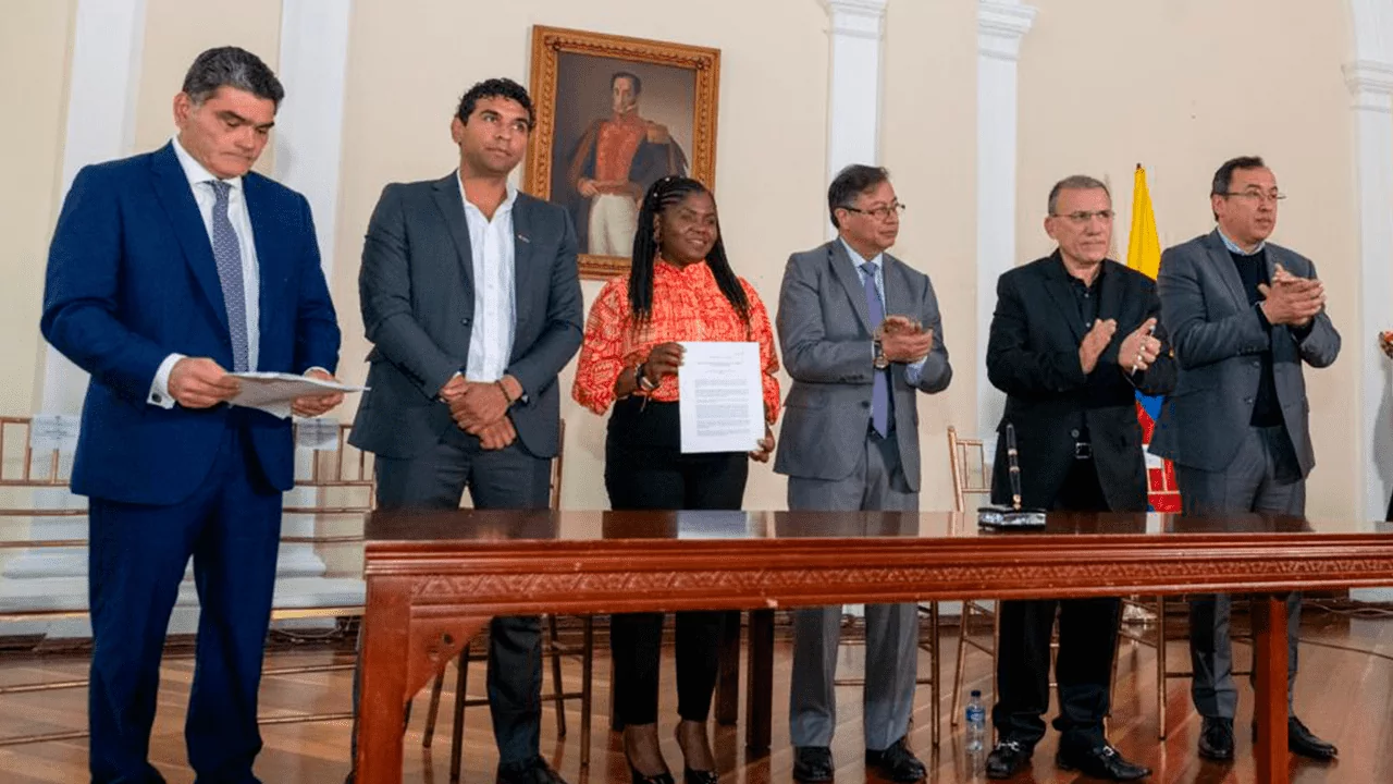 Junto al Ministro del Interior, Alfonso Prada, presentaron el texto de la iniciativa en el Salón de la Constitución, del Capitolio Nacional, ante los presidentes del Senado, Roy Barreras, y de la Cámara de Representantes, David Racero.