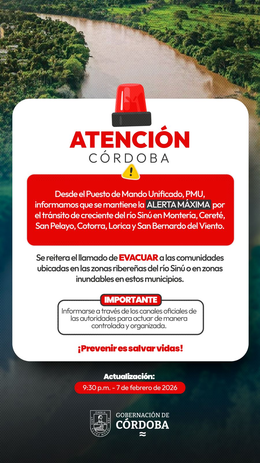 Desde el Puesto de Mando Unificado (PMU) se reitera la recomendación a la población ubicada en zonas de alto riesgo y en lugares que históricamente registran inundaciones, evacuar de manera inmediata hacia sitios seguros, atendiendo las orientaciones de la alcaldía de cada municipio.