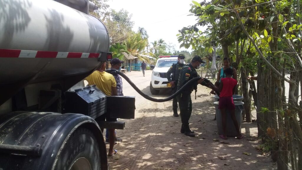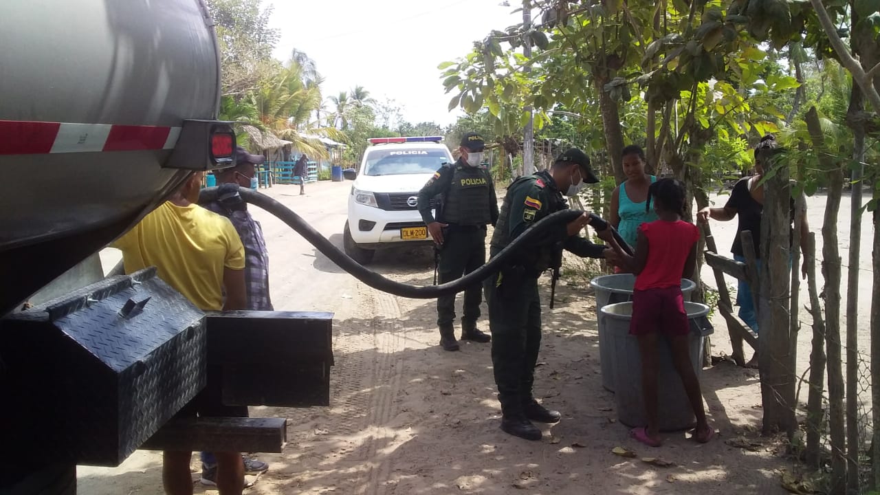 Es así cómo, la institución policial ha llevado más de 10 mil litros de agua potable al corregimiento Castillo, zona rural del municipio de San Bernardo del Viento. Se mitiga la problemática social que se viene presentando por la falta del preciado líquido.