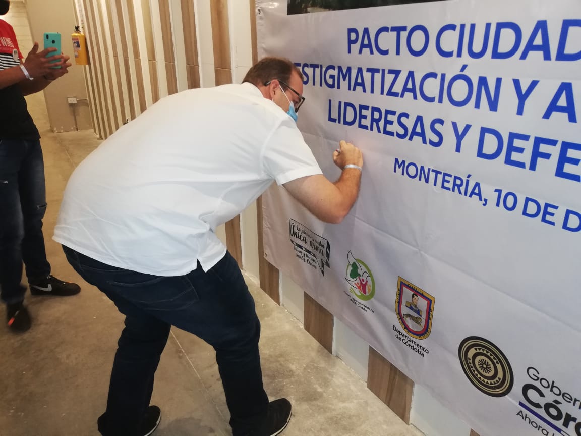 Durante este importante evento se firmó el pacto ciudadano contra la estigmatización y a favor de los defensores y líderes sociales de Córdoba, al tiempo que se dio lectura al decreto 000578 por medio del cual se resalta la labor de los defensores y defensoras de los derechos humanos en Córdoba. —