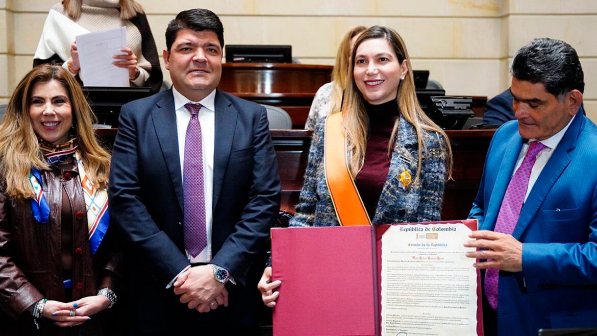La condecoración fue hecha por el presidente del Senado, Juan Diego Gómez y la mesa directiva; destacando que la congresista de Cereté, lideró importantes proyectos de ley en beneficio de la mujer, emprendimientos, casas refugio y u sinnúmero de proyectos de impacto social que logró consolidar para su región y el país.