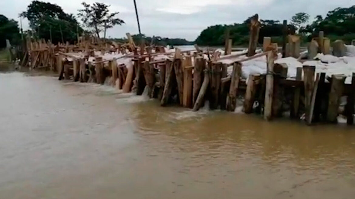 Desde la zona los habitantes advierten que el río está filtrando agua al ceder los costales que sirven de muro de contención y por eso la necesidad de reforzar el tablestacado.