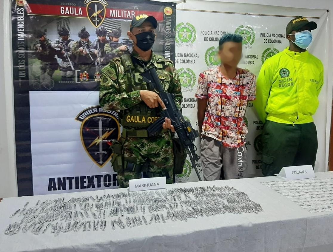 La operación, que se llevó a cabo mediante orden de allanamiento y registro en el casco urbano de Montelíbano, Córdoba, permitió la aprehensión de este hombre de 20 años de edad, quien al parecer se dedicaba al expendio de sustancias psicotrópicas en el municipio antes mencionado.