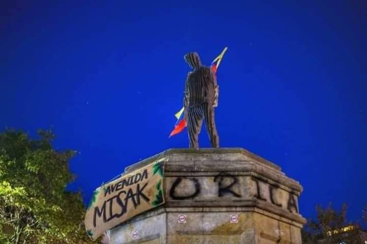 La estatua de Quesada fue derrumbada del pasado 7 de mayo, por los indígenas Misak, quienes consideraron que esta se debía tumbar, “En memoria de los hijos de Bachué, del pueblo muisca, de los pueblos indígenas de Colombia”.