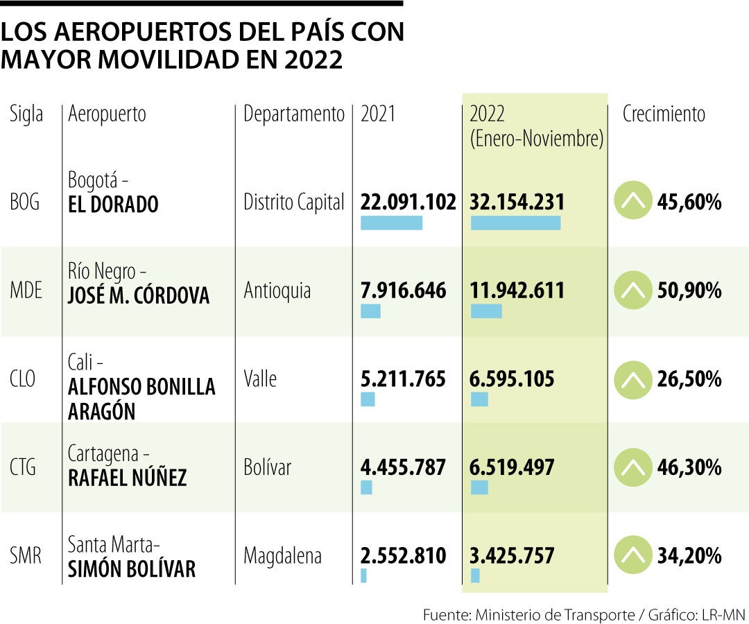 Estos fueron los aeropuertos que presentaron un mayor crecimiento en su movilidad durante este año.
