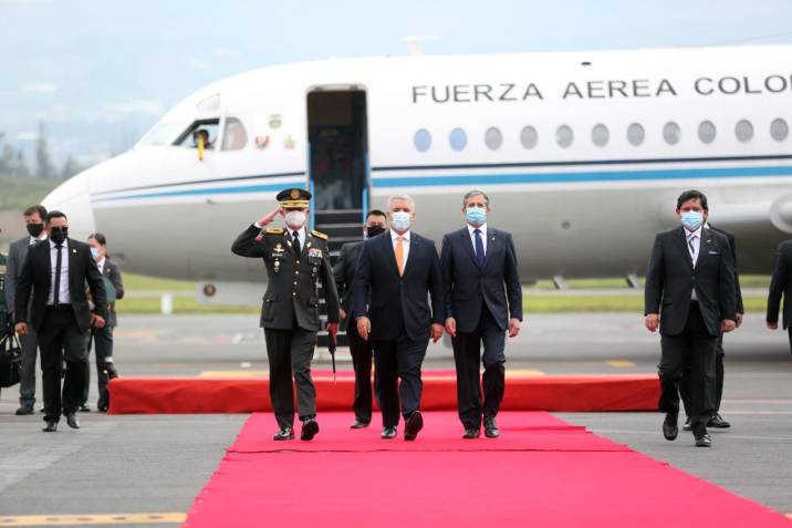 El presidente de la República, Iván Duque Márquez, visitó en Ecuador este domingo a su homólogo Guillermo Lasso, se reunió con su gabinete ministerial y la cúpula militar y abordó temas de seguridad, comercio, reapertura de la frontera y la conservación del medio ambiente.
