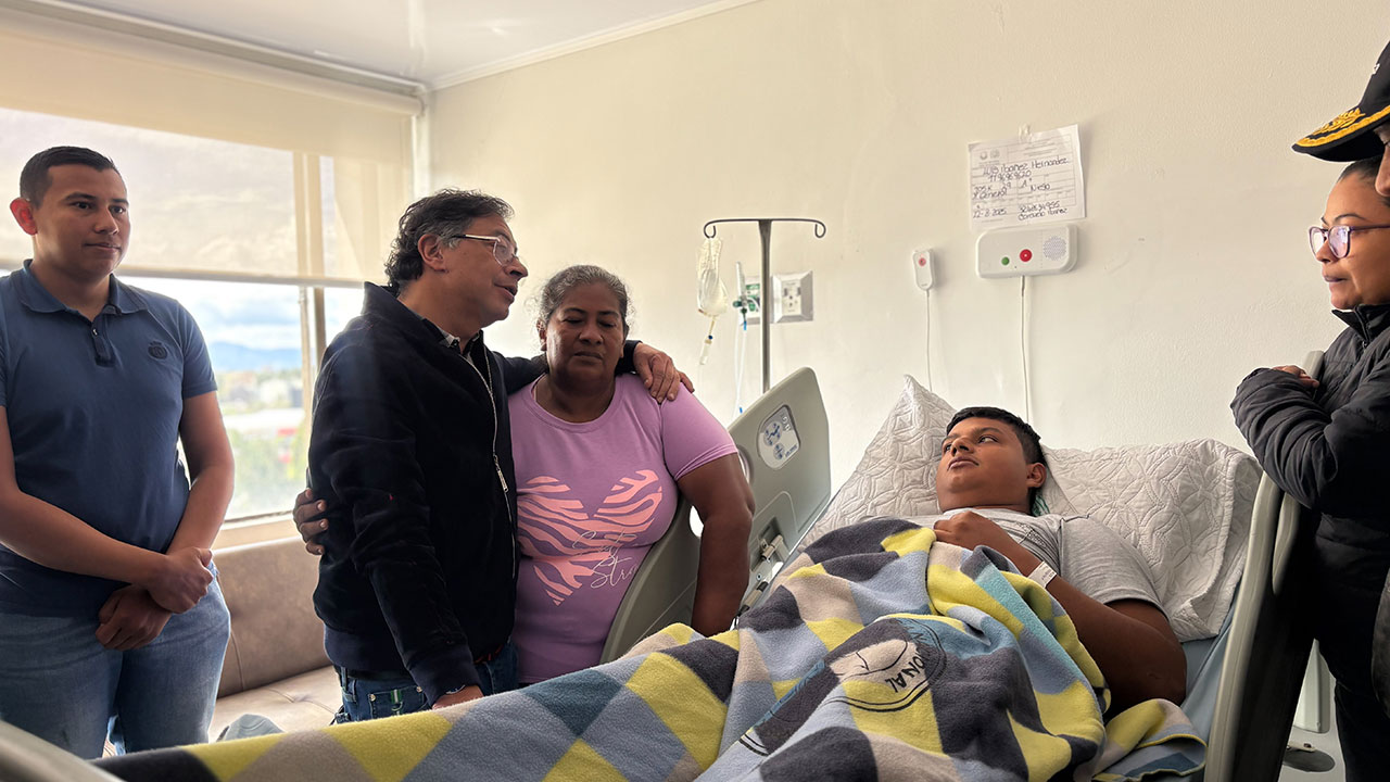 El presidente Gustavo Petro visitó el Hospital Central de la Policía para ver a los cuatro uniformados que resultaron heridos en un atentado en Amalfi, Antioquia. El ataque, perpetrado contra un helicóptero de la institución, dejó a los policías con diversas lesiones y un saldo de 13 uniformados muertos.