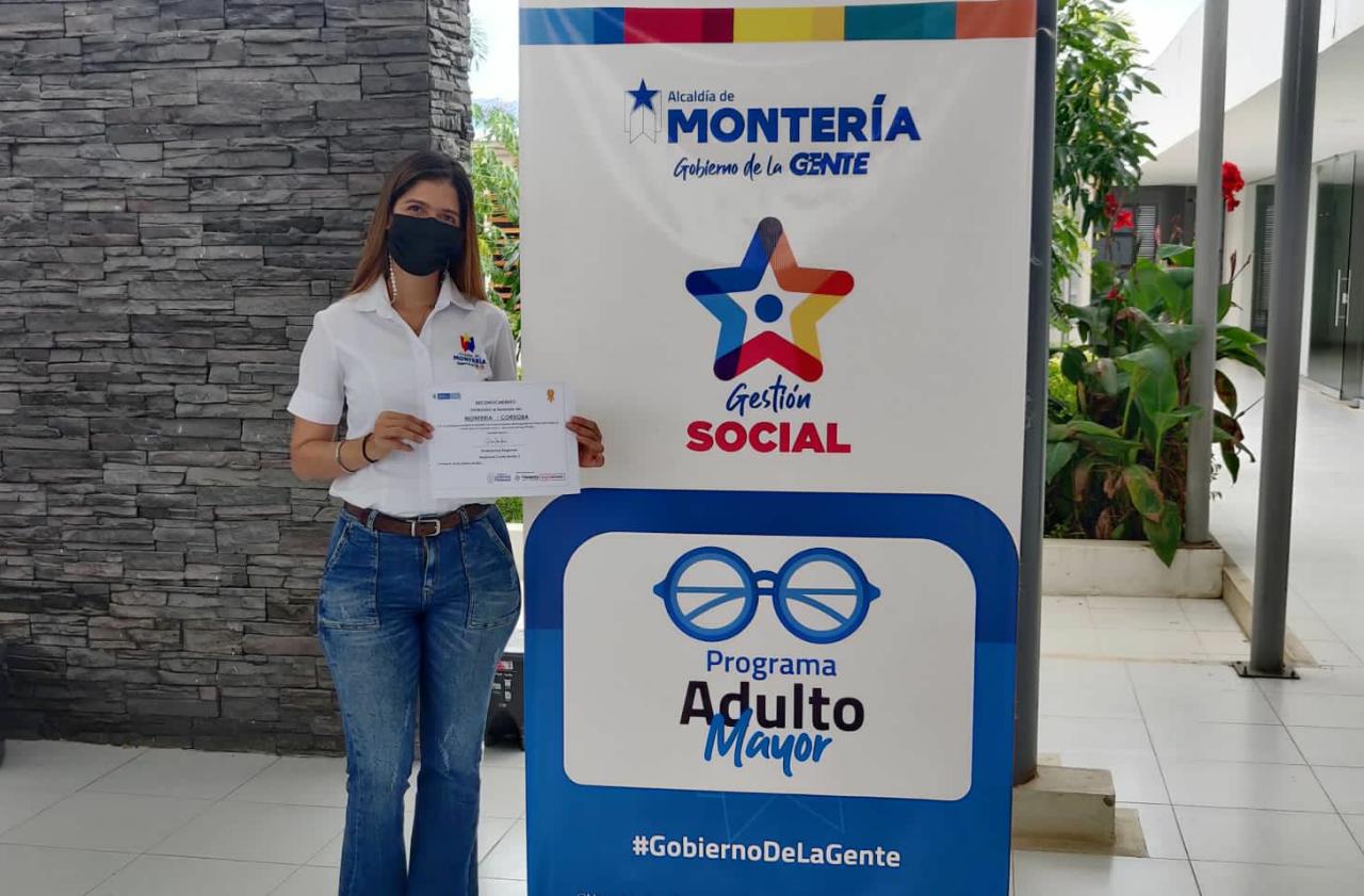 Montería, 7 de octubre 2021- El Fondo de Solidaridad Pensional hizo un reconocimiento por el buen manejo del programa, a la coordinadora del programa Adulto Mayor, Angélica Montes por el buen desempeño en la gestión obteniendo el 99.84% de ejecución.