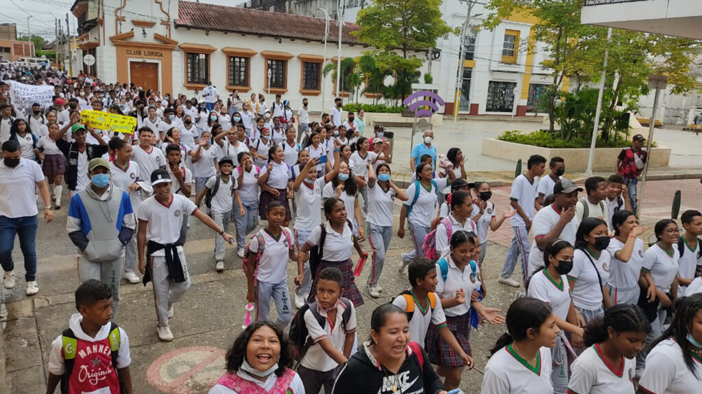 En Lorica, alumnos de la Institución Educativa, ITAL salieron a marchar contra los ocupantes de los predios que son de a Gobernación de Córdoba, pero hacen parte de ese colegio.