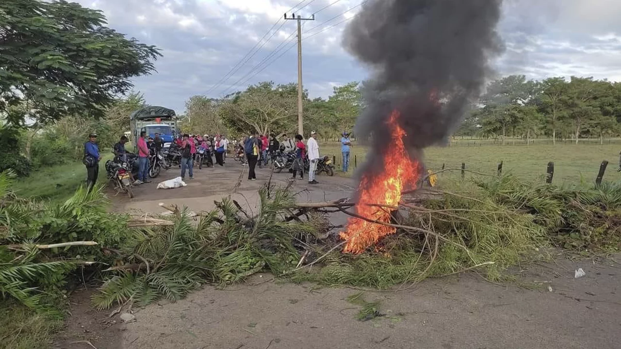 La protesta es a la altura del municipio de Purísima, Córdoba, donde los habitantes reclaman la reparación integral e inmediata de este importante tramo de la vía.