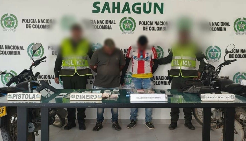 La acción policial se materializó en La Y, vereda El Venado del municipio de Sahagún, luego que los uniformados dieran con la ubicación de los sujetos, que minutos antes y a bordo de motocicletas, le habrían hurtado a varias personas sus pertenencias; también fue aprehendido un menor de 16 años de edad.
